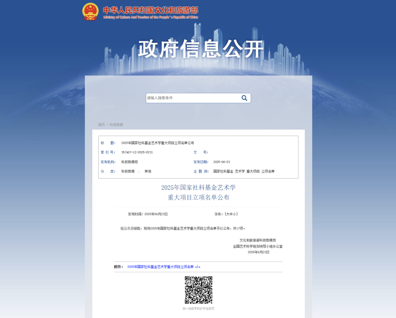 喜报 | 我校成功获批2025年度国家社科基金艺术学重大项目